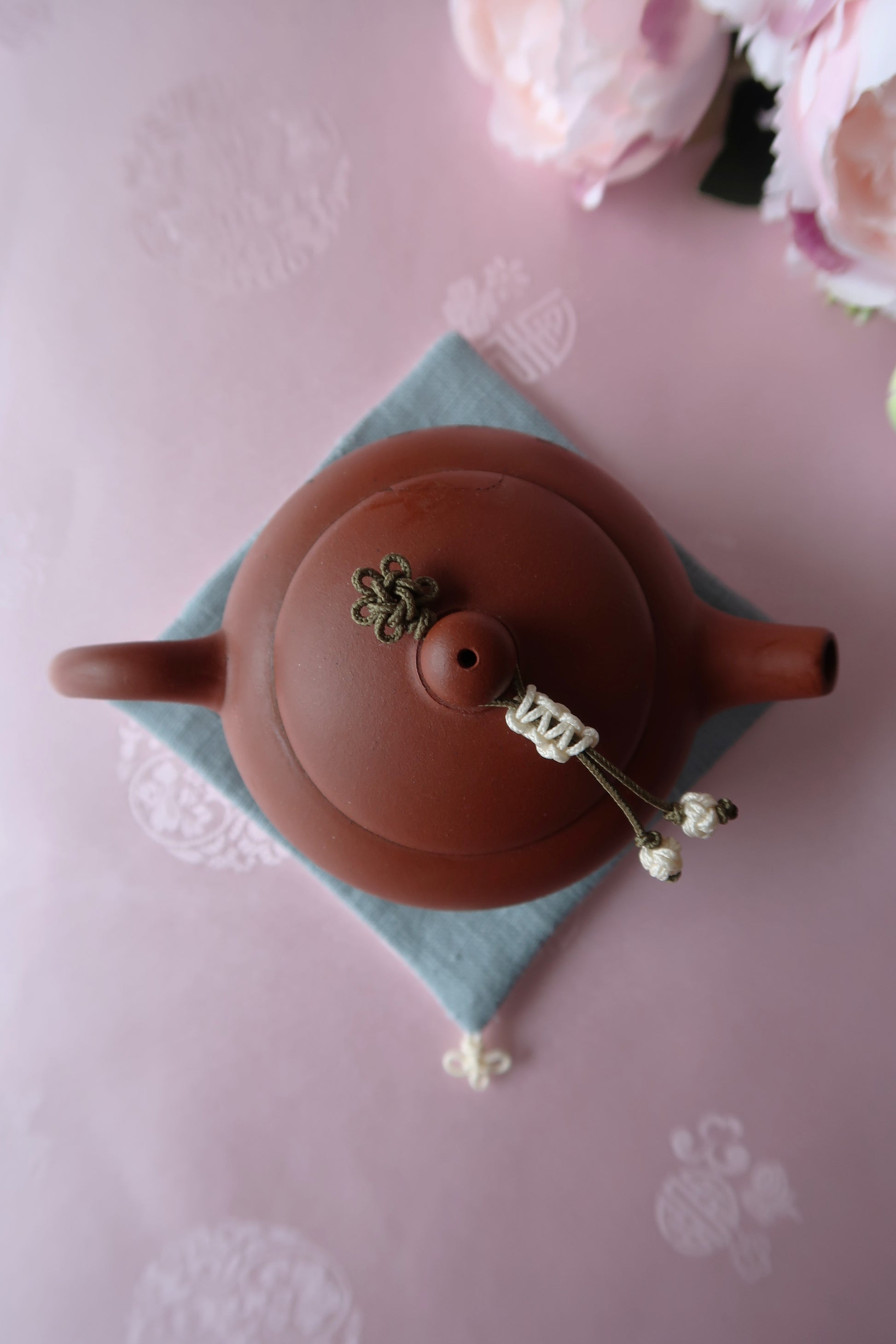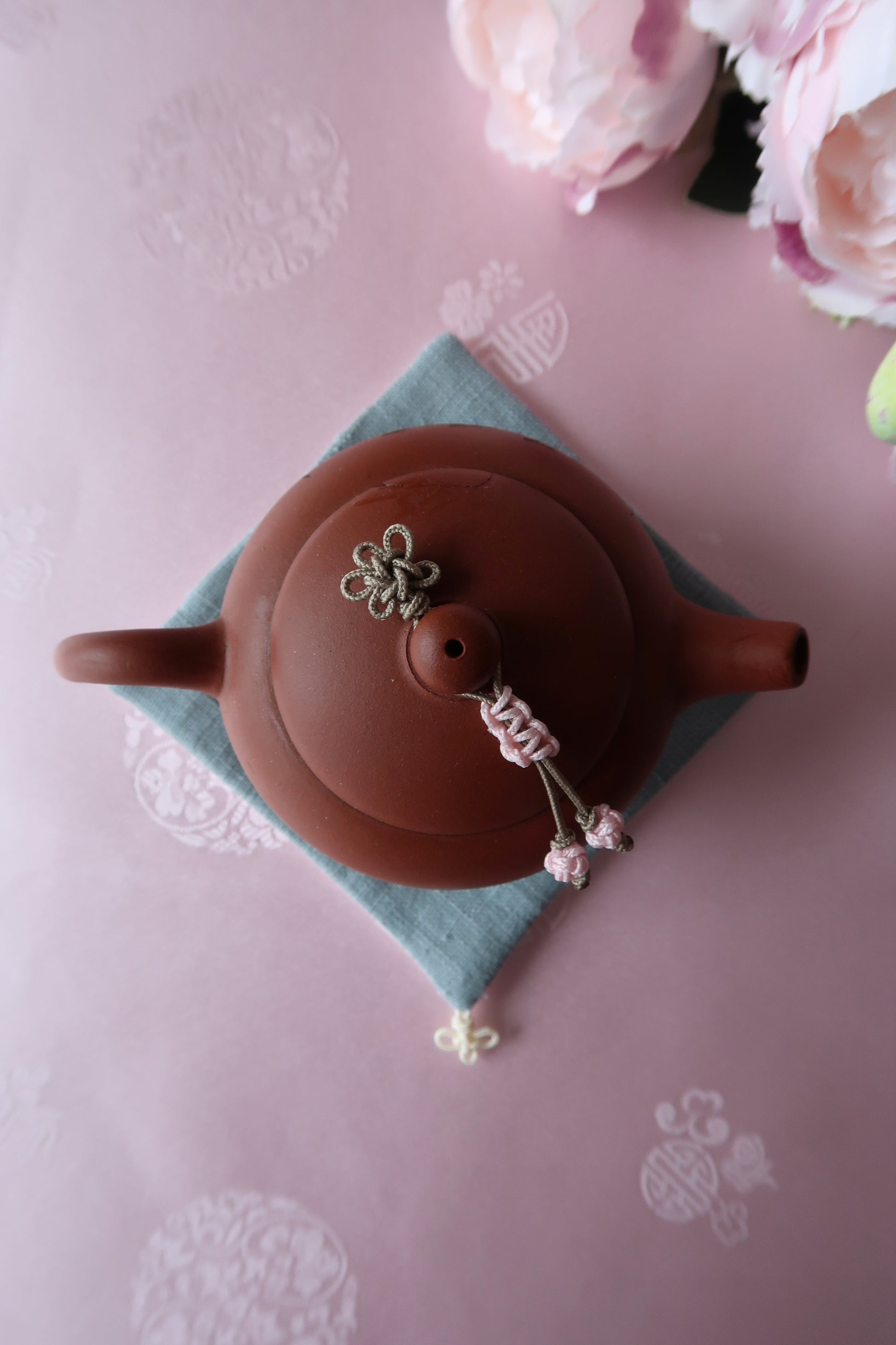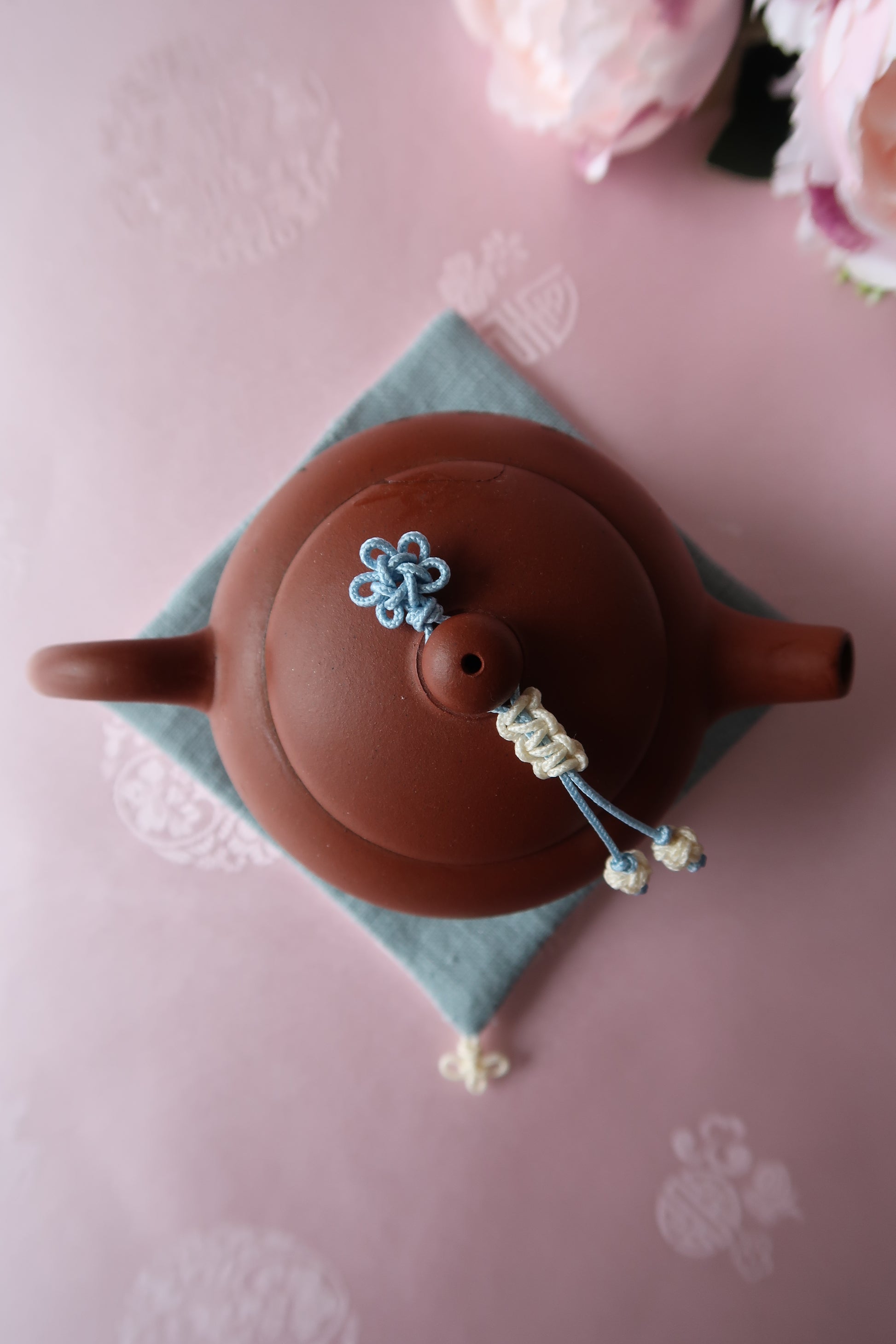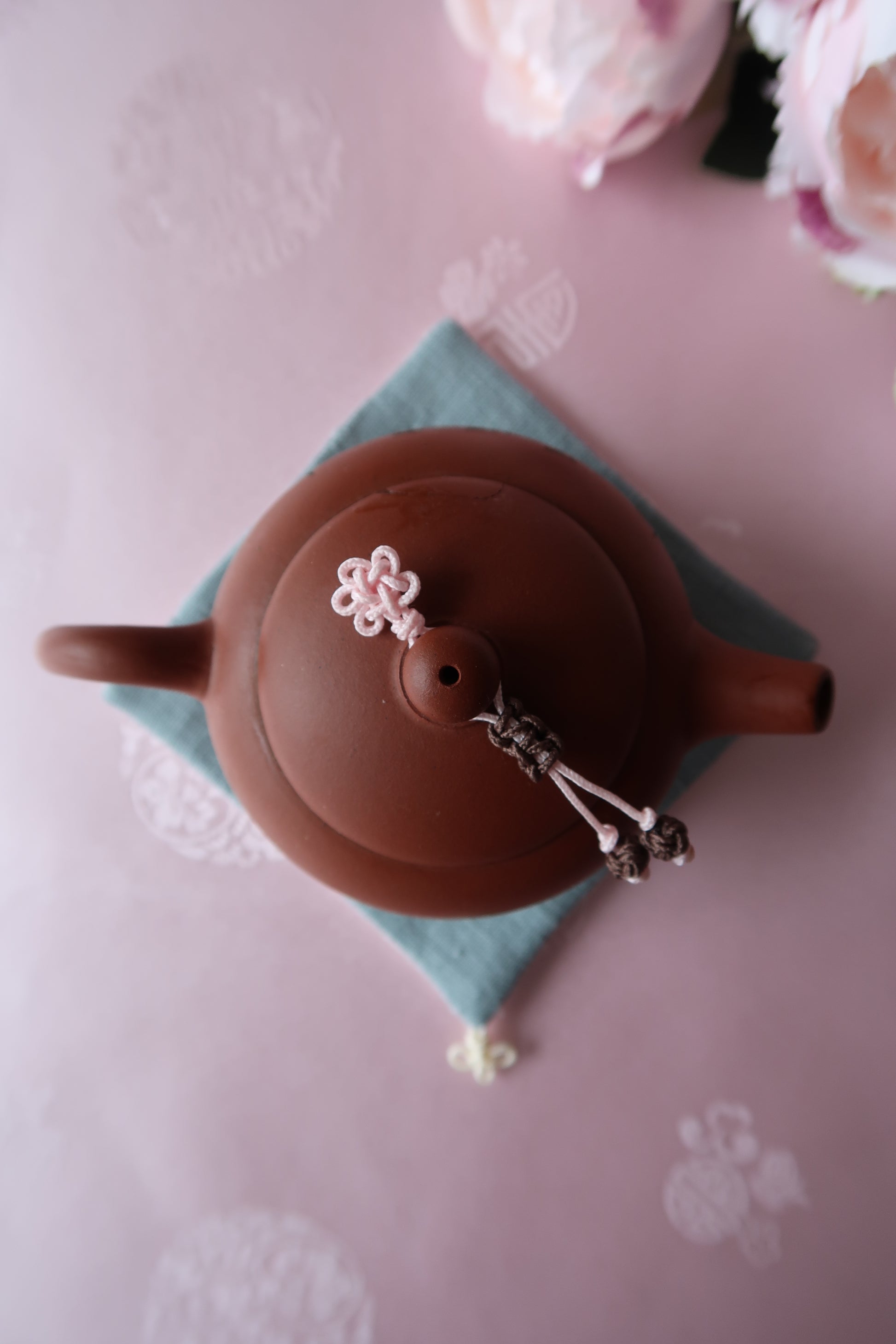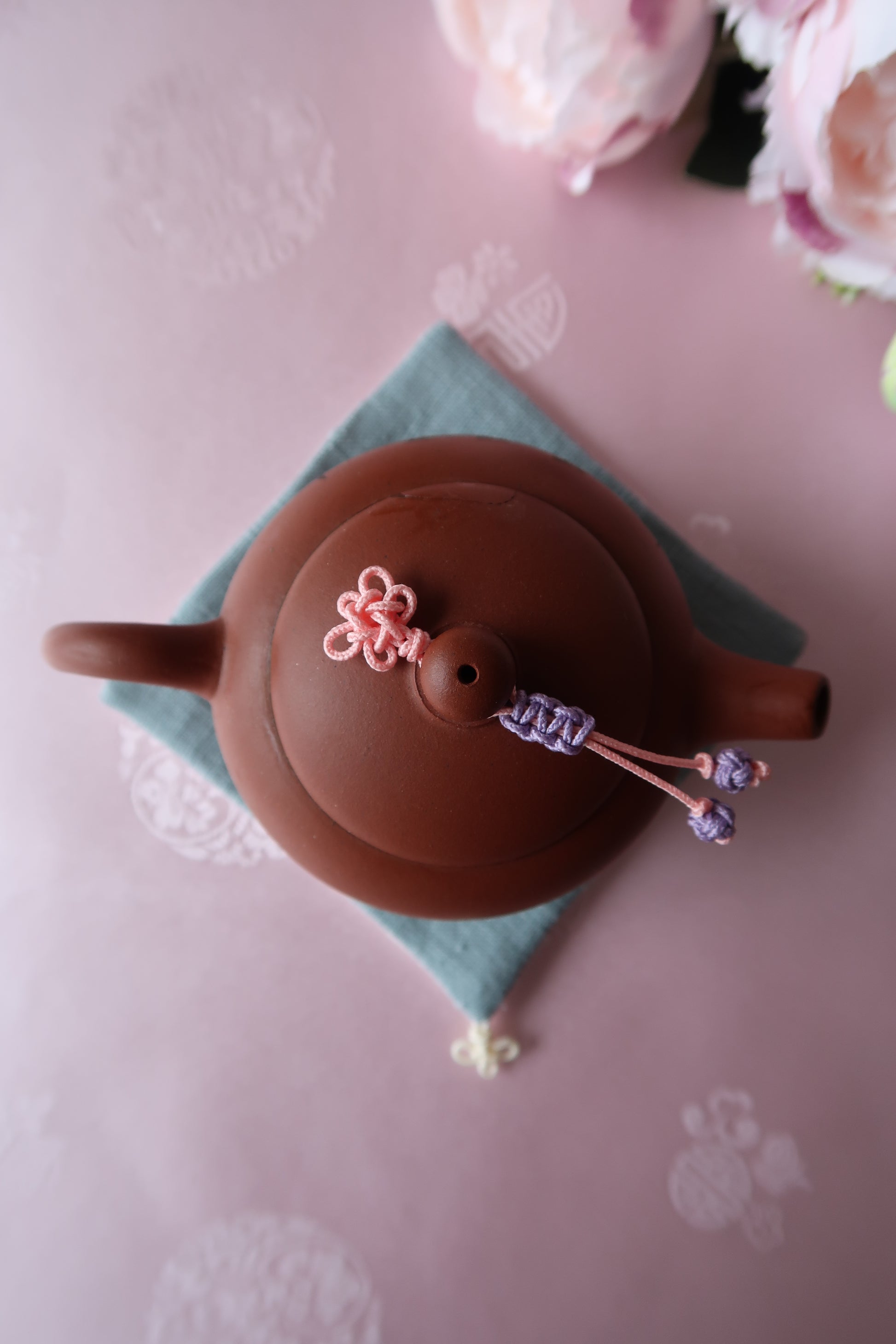 Ce bijou de théière Prunier est entièrement noué à la main selon la technique traditionnelle coréenne du maedup. Symbole de résilience et de renaissance, la fleur de prunier annonce la venue du printemps.