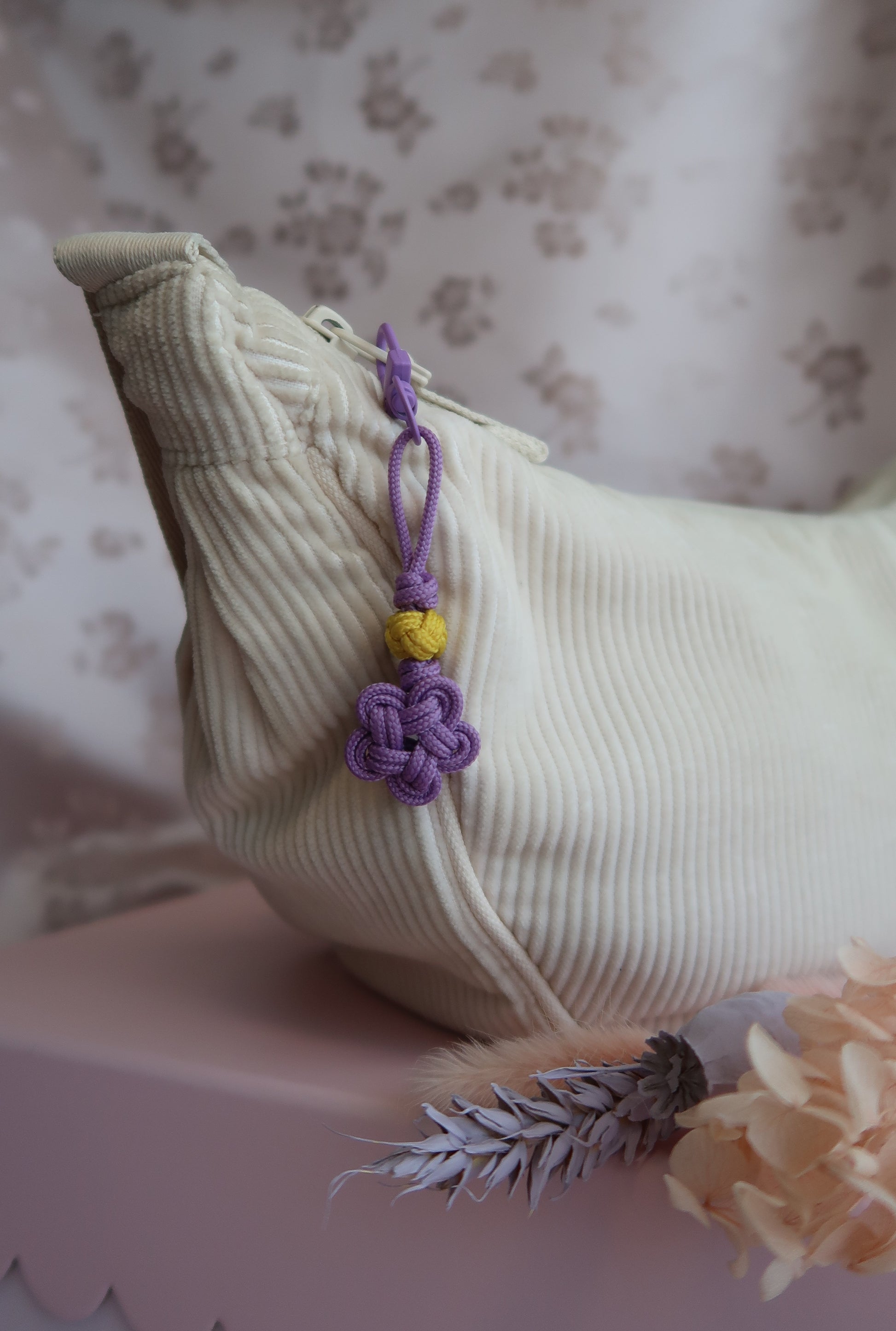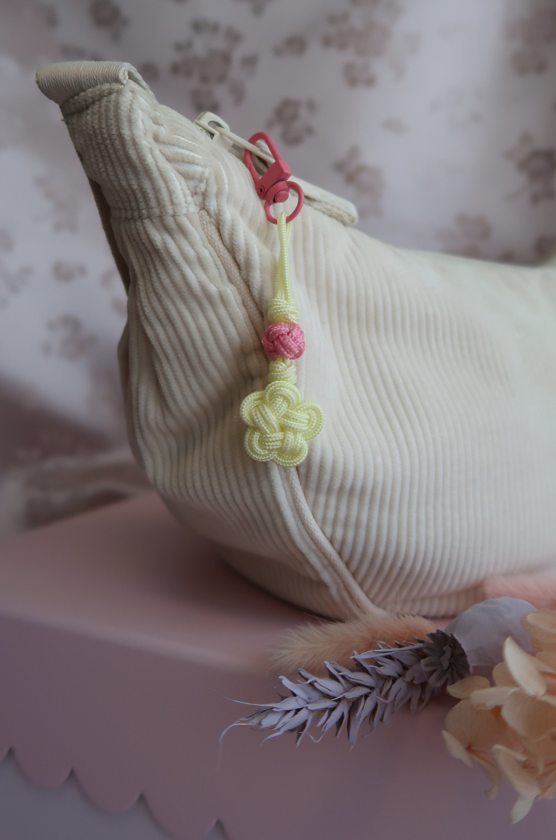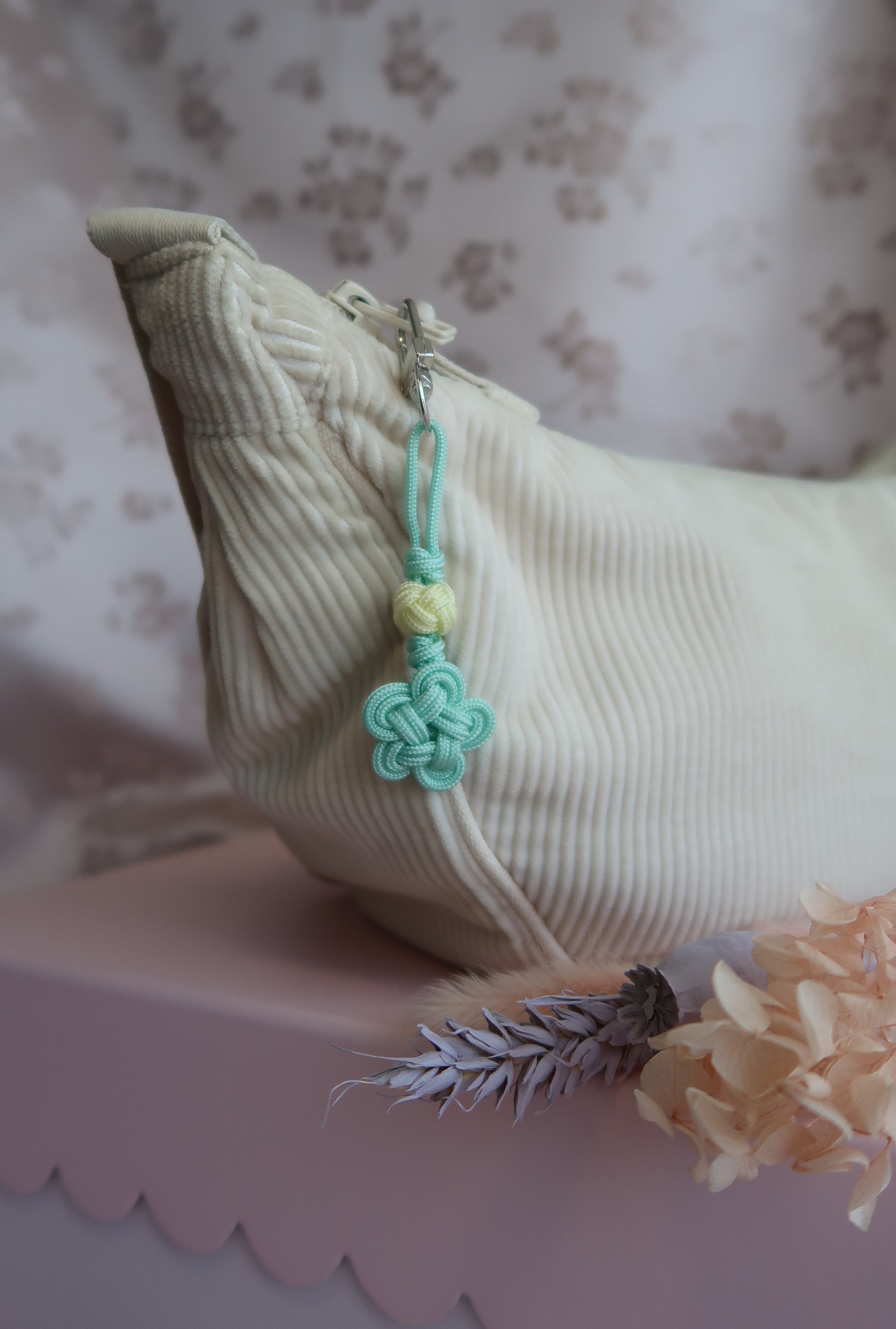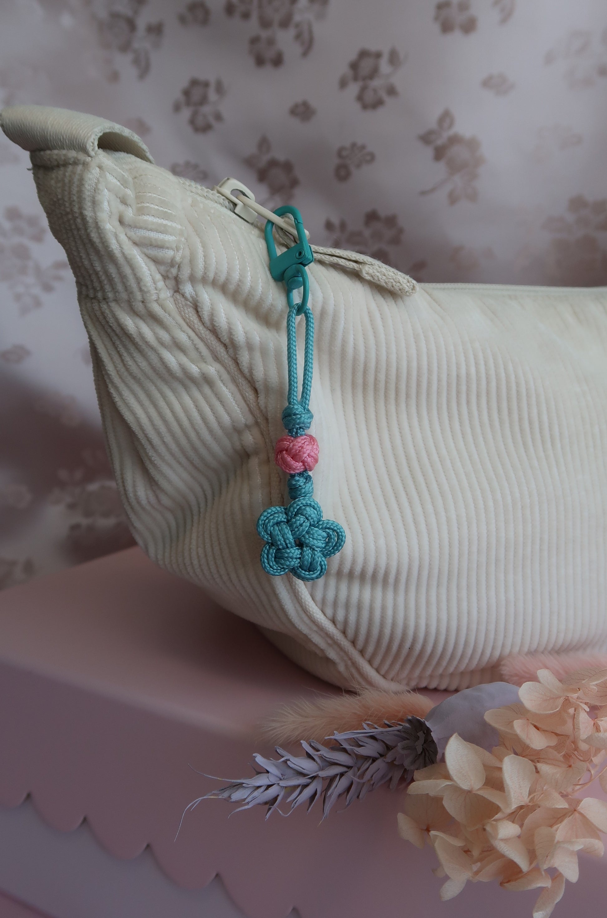 Porte clé réalisé avec le nœud étoile ✩࿐ Un nœud bague complète le porte clé.